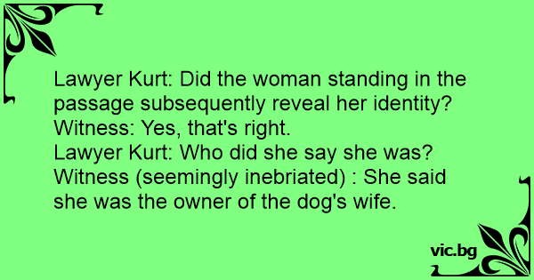 Witness (seemingly inebriated) : She said she was the owner of the dog's wife.