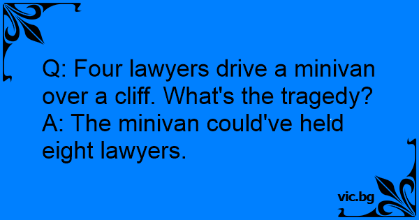 Q: Four lawyers drive a minivan over a cliff. What's the tragedy?