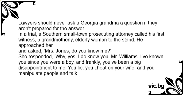 Lawyers should never ask a Georgia grandma a question if they aren’t prepared for the answer.