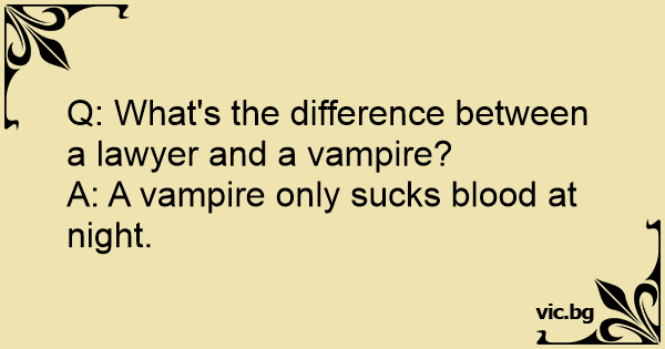 Hvad er forskellen på en advokat og en vampyr? Vampyren suger kun blod om natten.
