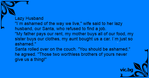 "I`m ashamed of the way we live," wife said to her lazy husband, our Santa, who refused to find a job.