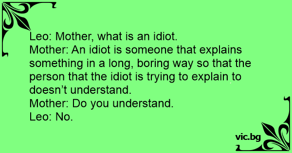 Mother: An idiот is someone that explains something in a long, boring way so that the person that the idiот is trying to explain to doesn’t understand.