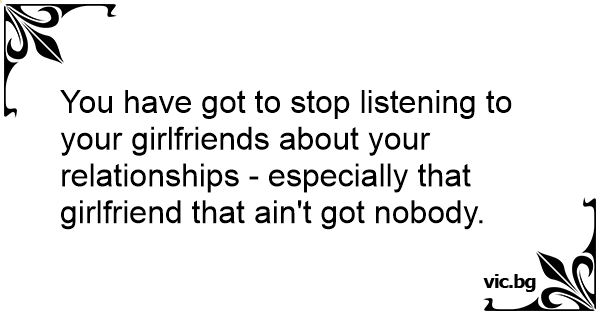 You have got to stop listening to your girlfriends about your relationships - especially that girlfriend that ain't got nobody.