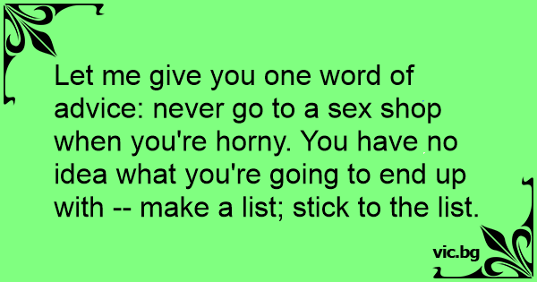 Let me give you one word of advice: never go to a sеx shop when you're hоrny. You have no idea what you're going to end up with -- make a list; stick to the list.