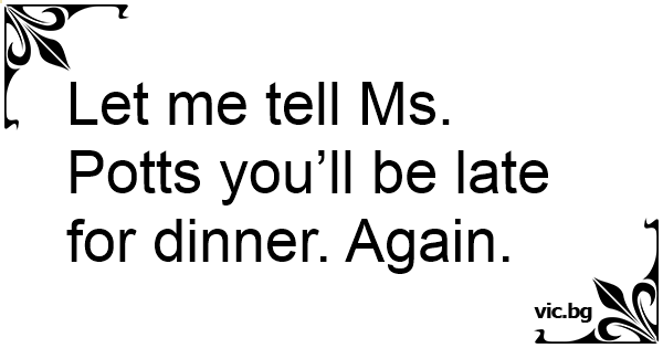 Let me tell Ms. Potts you’ll be late for dinner. Again.