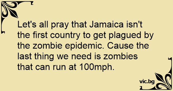 Let's all pray that Jamaica isn't the first country to get plagued by the zombie epidemic. Cause the last thing we need is zombies that can run at 100mph.