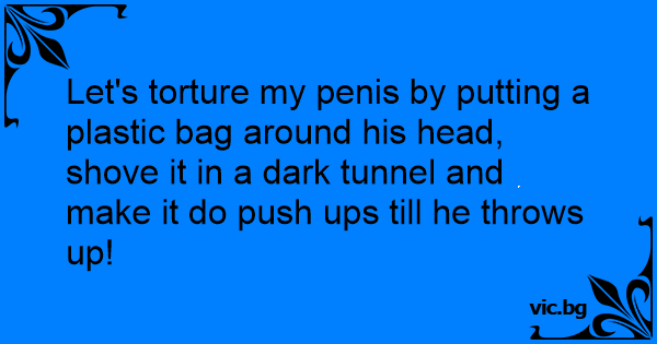 Let's torture my реnis by putting a plastic bag around his head, shove it in a dark tunnel and make it do push ups till he throws up!