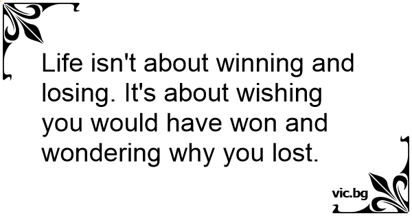 Life isn't about winning and losing. It's about wishing you would have won and wondering why you lost.