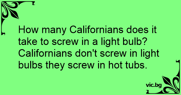 Californians don't sсrеw in light bulbs they sсrеw in hot tubs.