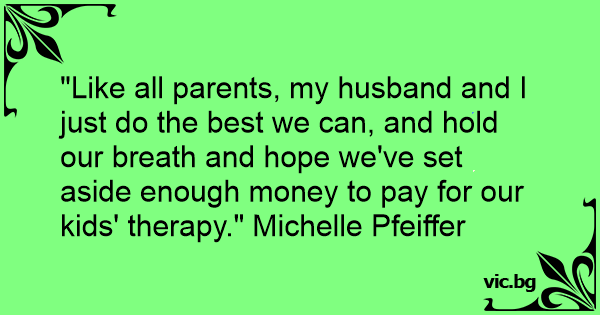 "Like all parents, my husband and I just do the best we can, and hold our breath and hope we've set aside enough money to pay for our kids' therapy." Michelle Pfeiffer