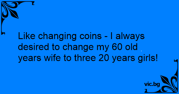 Like changing coins - I always desired to change my 60 old years wife to three 20 years girls!