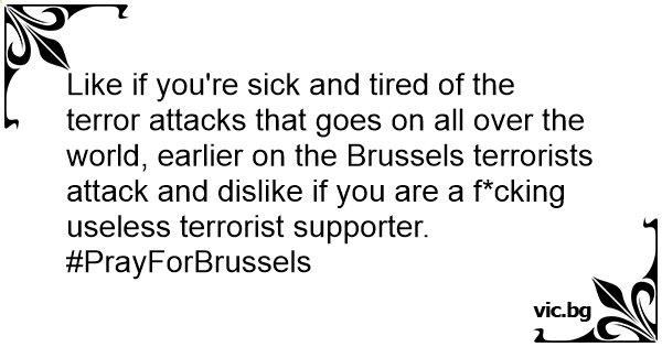 Like if you're sick and tired of the terror attacks that goes on all over the world, earlier on the Brussels terrorists attack and dislike if you are a f*cking useless terrorist supporter. #PrayForBrussels