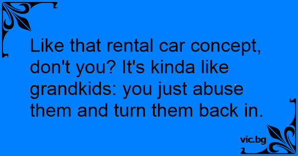 Like that rental car concept, don't you? It's kinda like grandkids: you just abuse them and turn them back in.