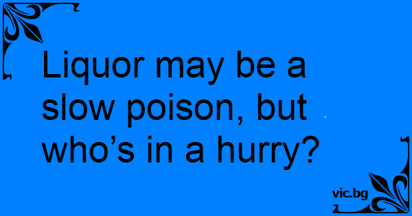 Liquor may be a slow poison, but who’s in a hurry?