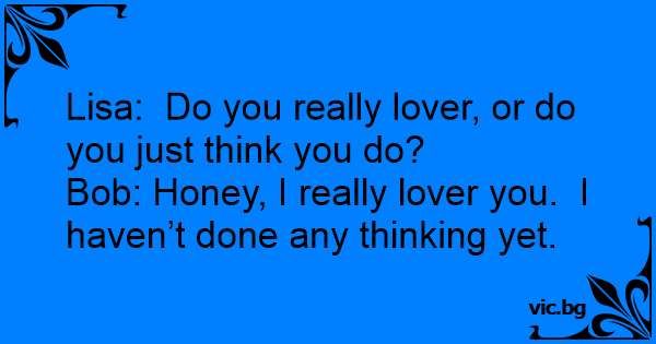 Bob: Honey, I really lover you. I haven’t done any thinking yet.