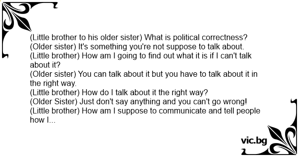 (Little brother to his older sister) What is political correctness?