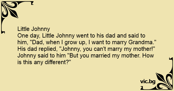 One day, Little Johnny went to his dad and said to him, "Dad, when I grow up, I want to marry Grandma."