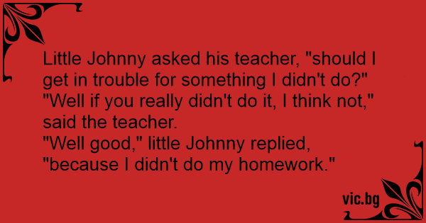 "Well good," little Johnny replied, "because I didn't do my homework."