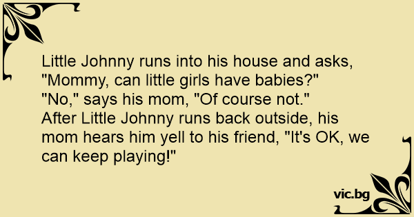 Little Johnny runs into his house and asks, "Mommy, can little girls have babies?"