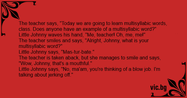 The teacher smiles and says, "Alright, Johnny, what is your multisyllabic word?"