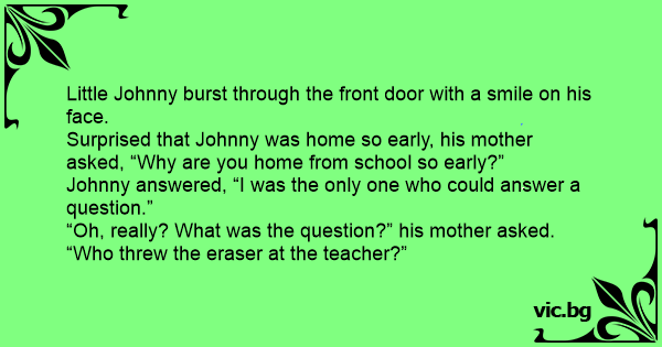 Little Johnny burst through the front door with a smile on his face.