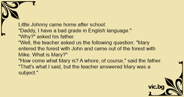 "Well, the teacher asked us the following question: "Mary entered the forest with John and came out of the forest with Mike. What is Mary?"