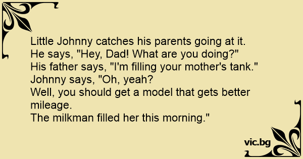 His father says, "I'm filling your mother's tank."