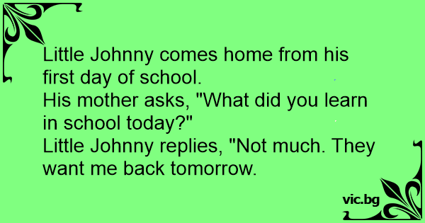 Little Johnny replies, "Not much. They want me back tomorrow.