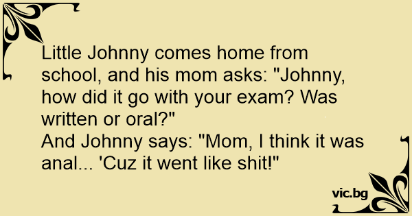 Little Johnny comes home from school, and his mom asks: "Johnny, how did it go with your exam? Was written or оrаl?"
