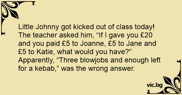 The teacher asked him, “If I gave you £20 and you paid £5 to Joanne, £5 to Jane and £5 to Katie, what would you have?”