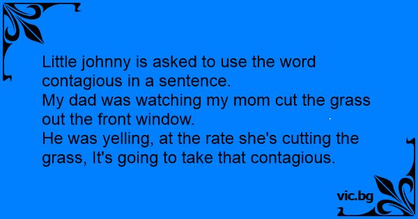 Little johnny is asked to use the word contagious in a sentence.
