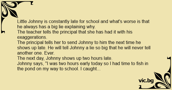 Little Johnny is constantly late for school and what's worse is that he always has a big lie explaining why.