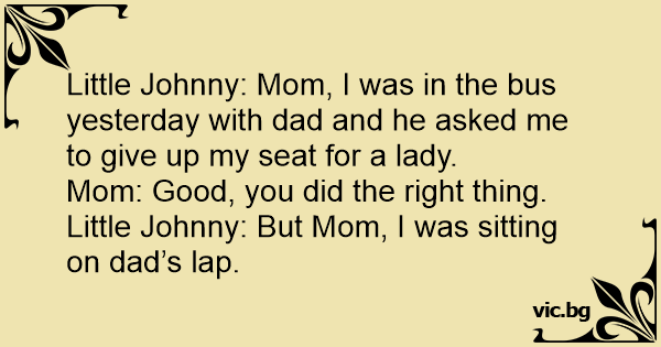 Little Johnny: But Mom, I was sitting on dad’s lap.