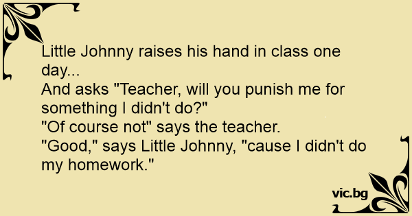 "Good," says Little Johnny, "cause I didn't do my homework."