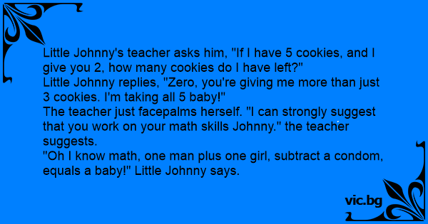 "Oh I know math, one man plus one girl, subtract a соndом, equals a baby!" Little Johnny says.