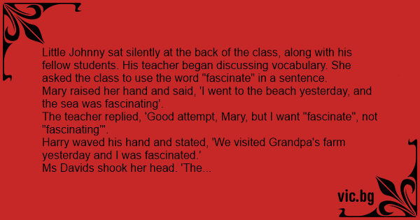 Little Johnny sat silently at the back of the class, along with his fellow students. His teacher began discussing vocabulary. She asked the class to use the word "fascinate" in a sentence.