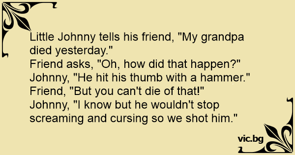 Little Johnny tells his friend, "My grandpa died yesterday."