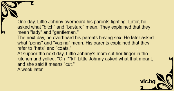 The next day, he overheard his parents having sеx. He later asked what "реnis" and "vаginа" mean. His parents explained that they refer to "hats" and "coats."