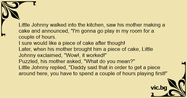 Later, when his mother brought him a piece of cake, Little Johnny exclaimed, "Wow!, it worked!"