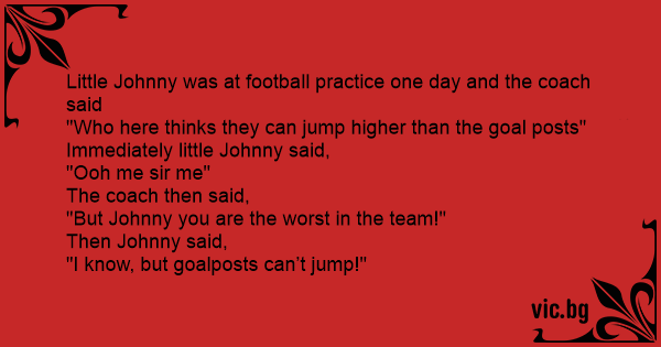 Little Johnny was at football practice one day and the coach said