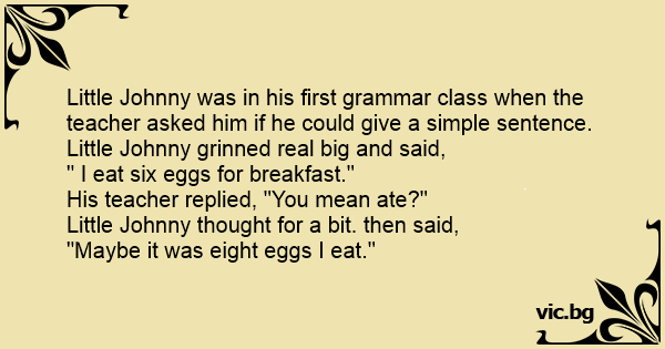 Little Johnny was in his first grammar class when the teacher asked him if he could give a simple sentence.