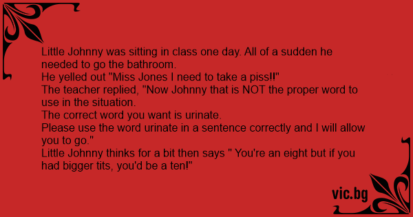 Little Johnny was sitting in class one day. All of a sudden he needed to go the bathroom.