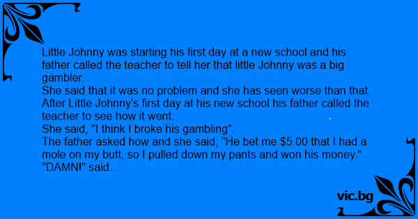 Little Johnny was starting his first day at a new school and his father called the teacher to tell her that little Johnny was a big gambler.
