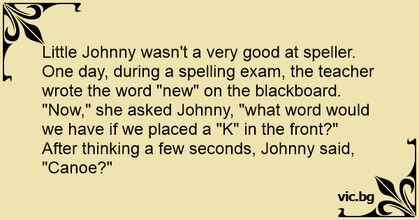 One day, during a spelling exam, the teacher wrote the word "new" on the blackboard.