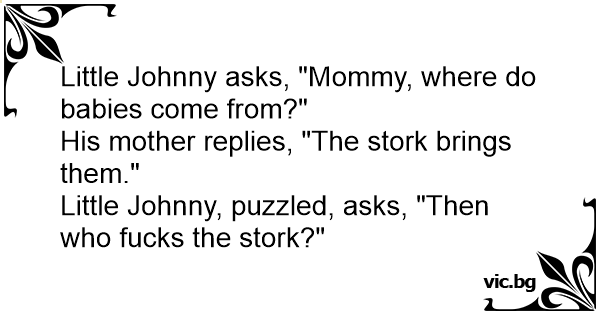 Little Johnny, puzzled, asks, "Then who fuскs the stork?"