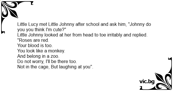 Little Lucy met Little Johnny after school and ask him, "Johnny do you you think I'm cute?"