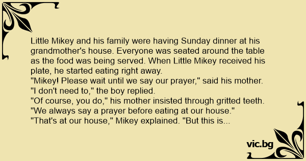 "Mikey! Please wait until we say our prayer," said his mother.