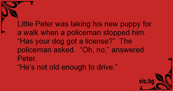 “Has your dog got a license?” The policeman asked. “Oh, no,” answered Peter.