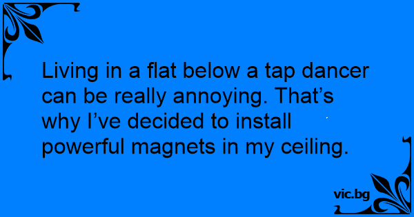 Living in a flat below a tap dancer can be really annoying. That’s why I’ve decided to install powerful magnets in my ceiling.