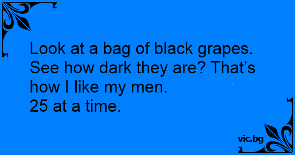 Look at a bag of black grapes. See how dark they are? That’s how I like my men.